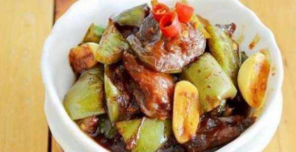 3.锅里放油烧热,加入茄子块炒软,盛出。