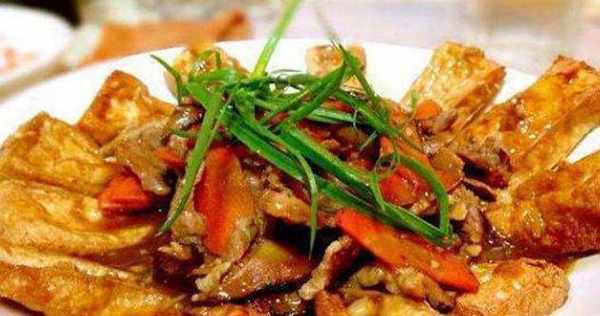 5、加入葱、姜、蒜和郫县豆瓣炒香,加少许糖、盐、清汤或水6、加入炸好的豆腐,用小火慢炖,豆腐入味