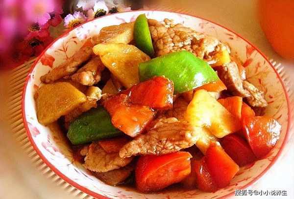 2.拌匀,然后加入食用油拌匀后使用。在平底锅中加热油。油温达到50%时,将炸好的汤汁倒入锅中,炸至外熟内软。取出并排干油。.3、另起锅准备酱料:先把锅里的油烧热,然后加入番茄酱、白醋、糖、少许水、盐一次,煮至沸腾。最后加入凤梨、炸里脊、青红椒(上色用),炒匀出锅。