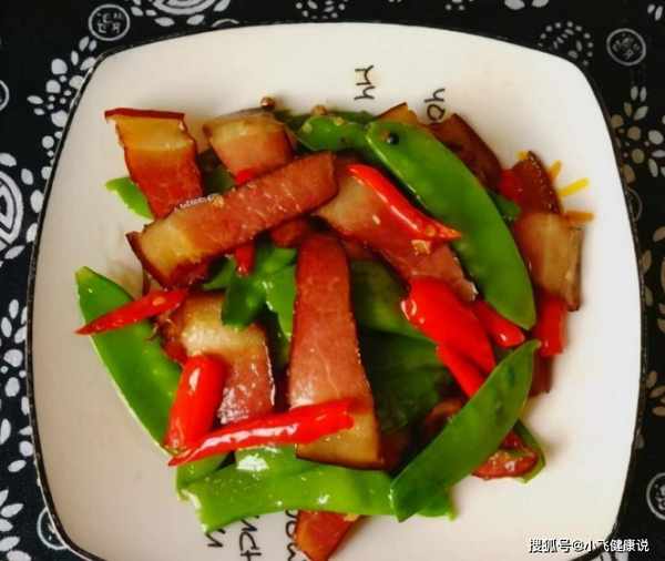 材料:荷兰豆250克,培根100克,鸡精少许,盐少许