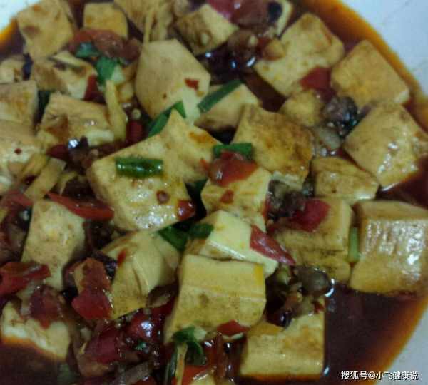 做法:大葱切成葱花,豆腐切成小方块,锅内油烧热至50%,加入辣椒酱小火爆香,倒入豆腐。加入红酱油、蒜蓉酱,拌至入味,加入开水至沸腾,水量以刚好超过豆腐面为宜,开中火慢煮,试味后再加入少许盐,胡椒面,水芡粉,大火烧至酱汁浓稠后关火,最后起锅撒上葱花。