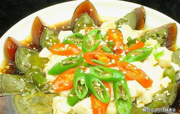 材料:皮蛋几个、豆腐一大块、蒜几瓣、盐、糖、醋、酱油、胡椒粉、香油