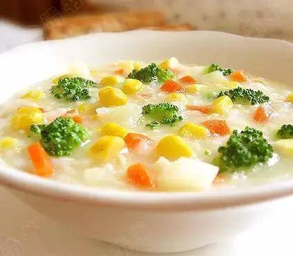7)将面粉煮至米粒饱和。这时,加入切碎的蔬菜和燕麦片。不容易煮熟的蔬菜可以先煮熟。煮一会儿,直到所有的材料都熟了,然后关火。