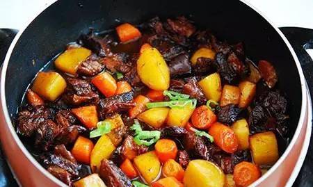8、牛肉煮至软烂时,将炸好的土豆倒入锅中,继续煮10-20分钟;