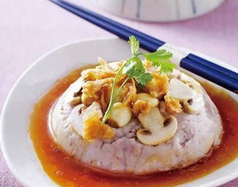 1.芋头洗净切块,捞出至软,压成泥;莲子先浸泡,然后磨碎,直至变软;将切好的蘑菇炒至热,放在盘子下面。
