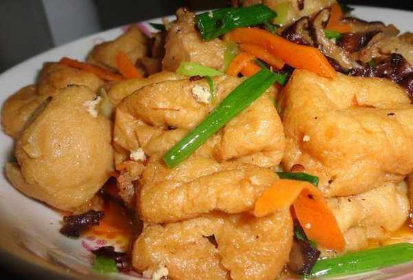 原料:瘦肉、豆腐、生抽、油、盐、葱。