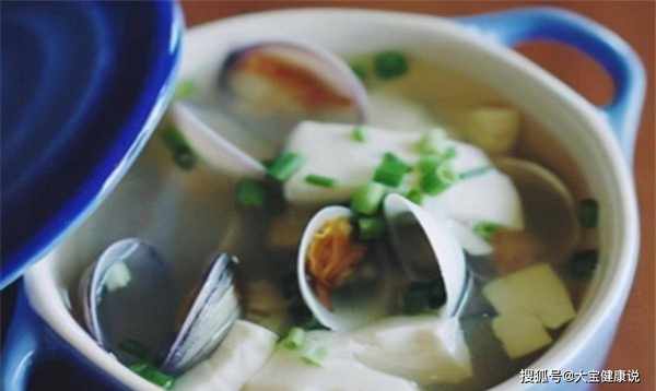 准备材料:文蛤150克,豆腐100克(南),韭菜100克,木耳(水发)20克,生姜5克,香油5克,盐2克,味精1克谷氨酸。