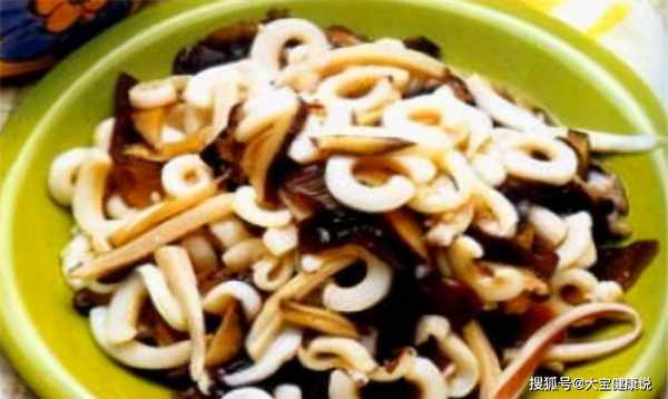 2.将植物油倒入煎锅中加热。煮好后,加入姜末、葱花、蒜末、鱿鱼丝,翻炒几下,加入木耳、香菇、精盐和料酒,拌匀,加少许开水和味精煮熟倒入开封后放入水淀粉勾芡,倒入香油即可食用。
