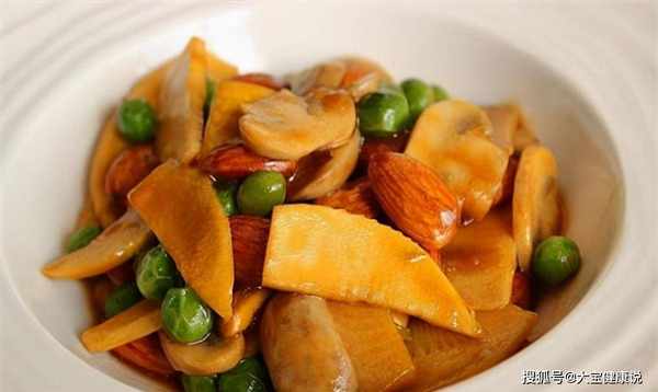 2.将高汤倒入锅中,加入杏仁和青辣椒,加盐和鸡汤调味,勾芡,加入冬笋,炒匀即可食用。
