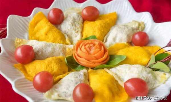 3、将碗放在笼子上用大火蒸10分钟,取出,翻面装盘,笼盘中间或边上用花草装饰鸡蛋饺子,炒锅置旺火,倒出鸡汤,加入味精、葱花、胡椒粉烧开,用湿淀粉勾芡,倒入熟猪油调匀,浇在鸡蛋饺子上即可食用。