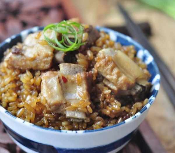 将排骨倒入锅中,将汤和米饭倒入电饭煲中。