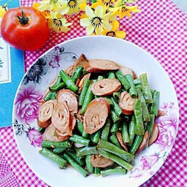 1、素鸡洗净切片,豆角去筋洗净切小块,姜洗净切片,蒜洗净切碎。