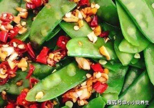 材料:荷兰豆200克、大蒜5瓣、红辣椒2条、生抽1茶匙、盐1茶匙