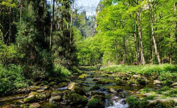 置身金鞭溪景区,满眼的绿色,潺潺的流水,让人心情舒畅,宛如世外桃源,令人流连忘返。