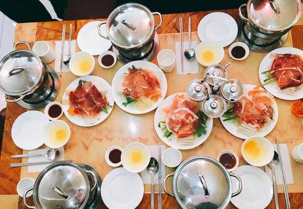 记得有一顿午饭吃的是国外火锅,与国内不同,国外火锅是每人一个锅,水不用开就可以煮菜,锅底气质很淡,比清汤还清,但却可以根据口味向锅底放入调料,涮的肉是猪肉,奇怪的是烤肉时是羊肉和鸭肉,火锅竟然是猪肉,气质嘛,真的就很一般,没有其他青菜,吃起来清汤寡水,就算肉质再新鲜,也吃不下太多,还不如喝点汤底,暖暖胃!