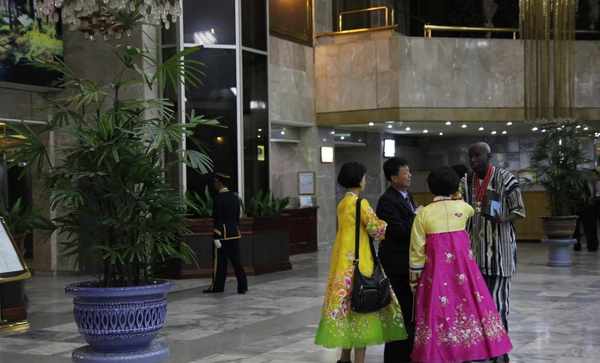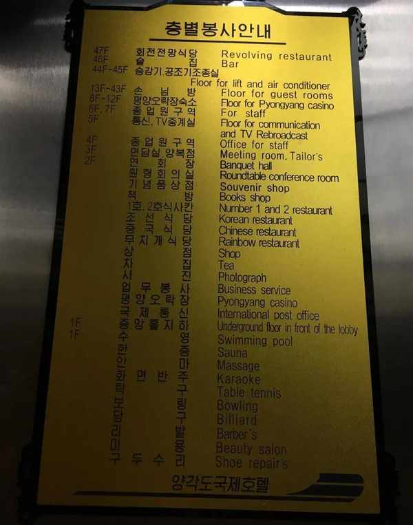 国外的涉外接待酒店有特级、著名、二级,其中羊角岛酒店属于特级酒店,西山酒店属于著名酒店,这两个酒店是接待外宾概率最高的,值得一提的是:羊角岛酒店大名鼎鼎,位于大同江畔,外部看起来47层高的酒店十分壮观,内部装修金碧辉煌,设施一应俱全,虽然被冠以“特级”二字有些夸张,但也相当于国内4星级标准,入住羊角岛酒店43层的房间内,向往看去,夜幕下的大同江畔,显得格外神秘与静谧!