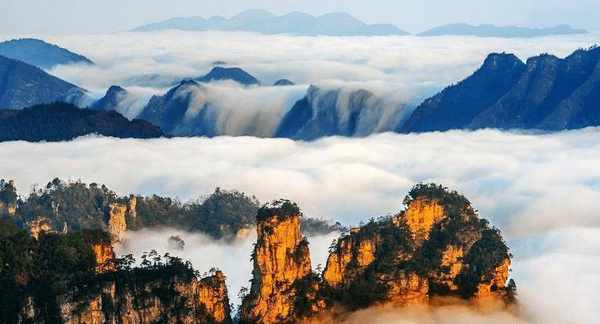 雄伟,当你来到这里,你会感到身心受到极大的震撼。齐镇杨家界的数量和山峰的容量与整个张家界地貌一样,像层层叠叠的奇石。充满活力,非常美丽。