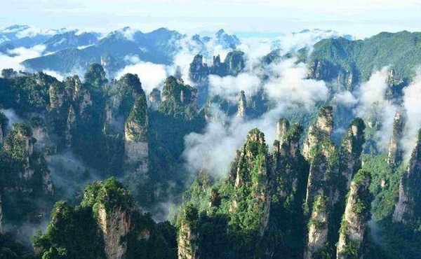 杨家界总面积3400公顷。位于武陵源风景区西北部。这里有百侯谷、香芝河、龙泉峡3个游览区。有大小景点200多个。距市区43公里,有公路可至,交通较为便利。景区最高峰海拔约1130米。其中,境内的植被可以说是非常茂密,森林覆盖率可达95%。目前以景区内的龙泉瀑布最为著名。张家界的面积比较大,心情不好或者压力大的时候来这里放松一下,你会发现自己已经完全融入到大自然的美景中了。
