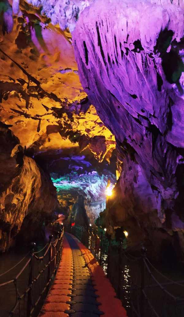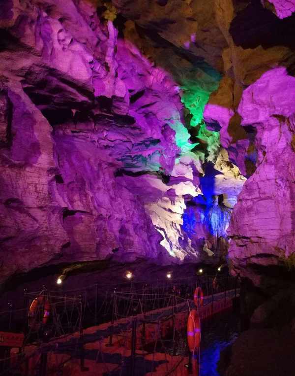 码头是这一站的出发点,小船悠悠的驶进夜郎洞,大约行驶了800米左右的水路,下船便开始了旱洞游览,全长1200米的路程,会花费掉你大约一个小时的时间,越进入到洞的深处,你就越会被这一个地下的炫彩王国惊艳。
