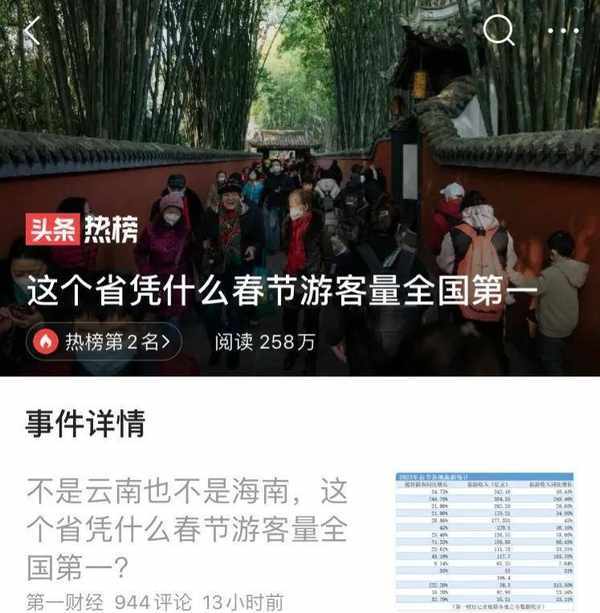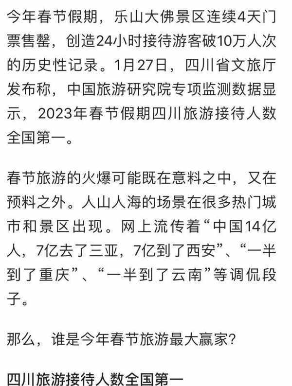 第一财经公布数据统计,四川才是春节旅游接待游客最多的省份。