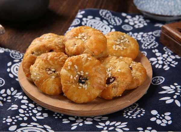 金华酥饼是浙江省金华市的一种传统小吃,也是著名的赠送亲朋好友的传统特产。 它的馅料主要由干菜制成,所以也被称为干菜酥饼。用白面粉、净脂肪肉、雪里的咸干菜、芝麻、麦芽糖、碱、精盐、菜籽油等制作皮肤和馅料。经过方便面、揉面、揉面、酥脆、剥皮、包馅、封口、擀饼、刷麦芽、撒麻、烘烤等10多道工序制成,其烘烤系统在专用陶炉中进行,内燃木炭,将饼坯贴在炉内壁上,烘烤、炖煮、排火后烘烤,前后5小时以上。