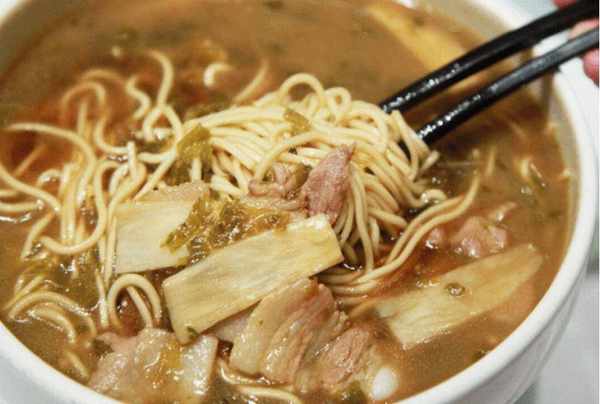 杭州片儿川是浙江省杭州市的一种传统小吃,属于浙菜系;面条浇头主要由雪菜、竹笋、瘦肉丝组成。已有100多年的历史,最早由杭州老店奎元馆首创。其特点是雪菜和笋片的美味片儿川价格适中,是杭州市民最喜爱的日常小吃之一。