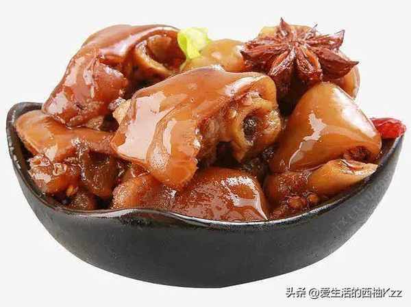 炒至猪手发黄时放生抽、米酒、盐继续翻炒,加入九层塔和适量水,以小火焖40分钟至汤汁浓稠。提示:焖猪手的过程中要翻拌,使得上色均匀。将猪手捞出,装盘,淋上原汁即可。