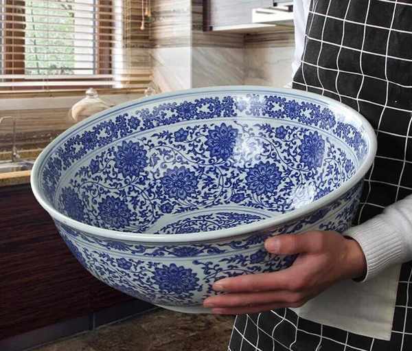 海碗,比老碗更大,碗口直径五六十公分都不算大,一般是用来放调料和酱菜的,最常见的就是卖凉皮的老板装辣子油和调料水的大海碗。如果用海碗装一碗油泼面,别说是一个人,甚至两个四口之家都吃不完。