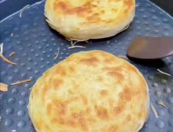 4.把肉夹馍的生饼用平底锅煎六七分钟,至两面金黄就可以了,