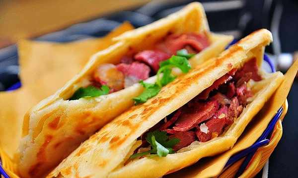 天上龙肉,地上驴肉。许多人耳熟能详的顺口溜,既然吃不上龙肉,这个驴肉火烧一定不能错过。驴肉火烧外焦里嫩,现烤现卖,烤好的火烧用刀划开,加上卤制好的驴肉,再浇上一点驴肉汤,咬上一口,外焦里嫩,唇齿留香。