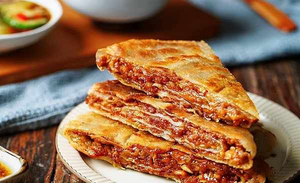 香河肉饼是河北廊坊的特色小吃,最大的特点就是肉多,超级多,皮薄肉厚,有点类似我妈妈小时候做的肉合子。面饼差不多只有两张A4纸的厚度,多油煎制而成,吃起来外焦里嫩、油而不腻,基本上吃一块就足以饱腹。
