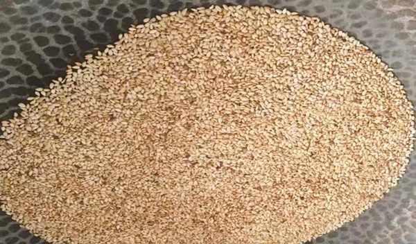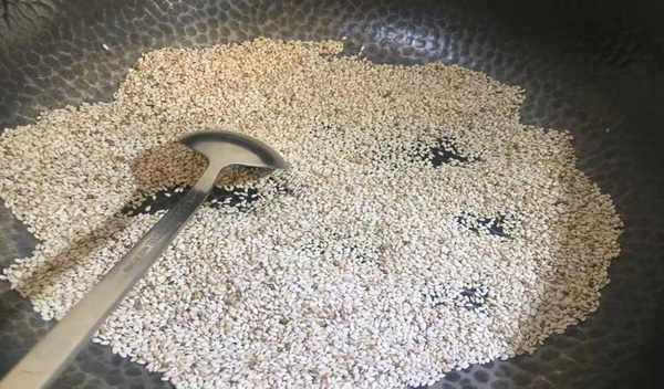3.一直把芝麻炒的香喷喷的、黄兰兰的就管出锅了,倒出来以后摊开晾凉。