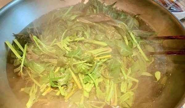 4.槐花蒸熟以后赶紧倒出来、抖散,吃的时候稍微撒点盐、淋上香油即可,香喷喷的、小时候都是当饭吃。