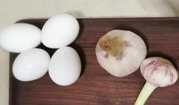 1.准备几个煮熟的鸡蛋、再准备两轱辘蒜。