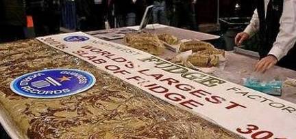 世界上最大的软糖:Northwest软糖工厂于2004年11月5日在加拿大的多伦多制作而成,这块巨大的软糖重1.36吨,不知道需要多少个人才能吃完。