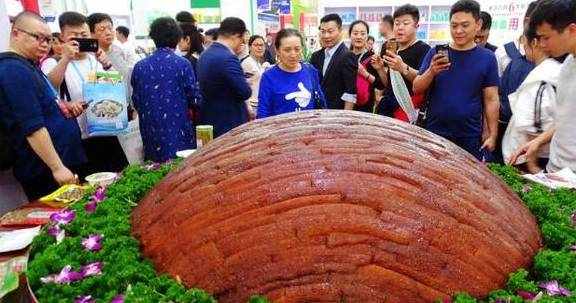 这扣肉是来自湖南的厂商制作的。重660斤直径一米六。令人称奇。