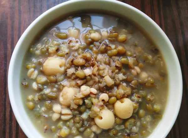 原材料:大米60克,薏米40克,莲子、绿豆各30克。