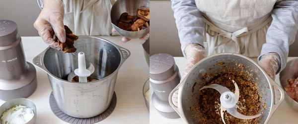 7、把焯水后的香菇放入绞肉机中,依旧用“绞菜”,6秒钟后香菇依旧成碎碎的。