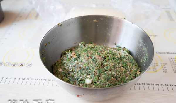 材料:油菜2斤,猪肉500克,泡发香菇20朵,盐适量,花生油20毫升,葱姜水适量,生抽1勺,多谷物营养面粉500克,干酵母3克,水270克