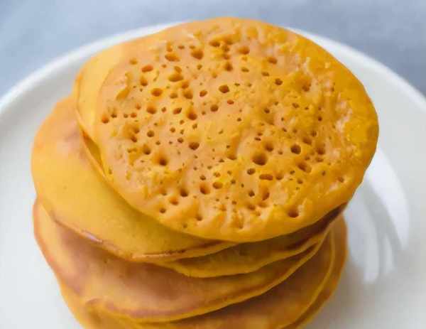 如果不喜欢吃油腻的,可以选择平底锅不刷油,直接将我们搅拌好的面糊倒入平底锅当中。面糊的量不要太多,刚好铺满平底锅即可。烙至一面定型,然后翻面,烙另一面。直到两面都变色,烙熟即可出锅。整个过程不超过十分钟,非常简单,而且营养丰富。