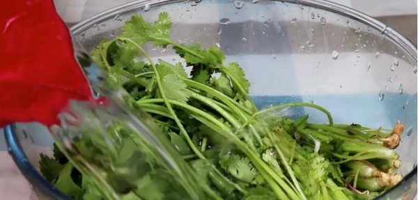 1、香菜一定要清洗干净,然后把表面的水分控干。