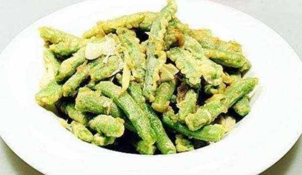 材料:豆角、鸡蛋、面粉、香油几滴、葱、姜、蒜、盐、糖、醋1茶匙、料酒1茶匙、酱油1茶匙。