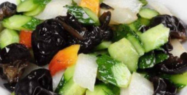 材料:黑蘑菇、黄瓜、白萝卜、胡萝卜、大蒜、植物油、盐、酱油、醋、糖