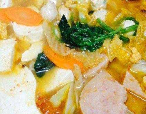 原料:猪肉、鸡蛋、白菜、豆腐、葱、姜、胡椒粉、甘草、食盐