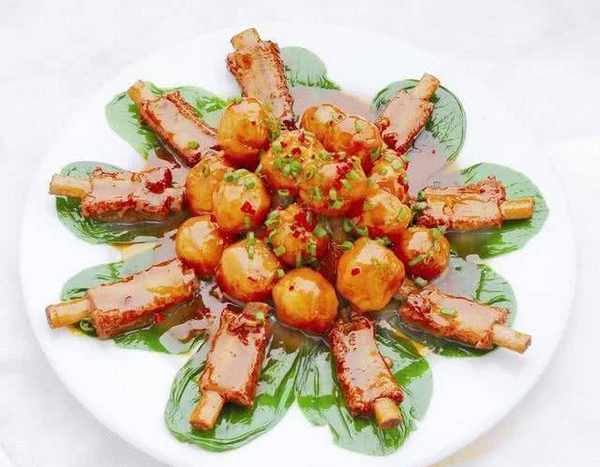 做法:1、排骨洗净切小块,土豆洗净,挖出小丸子的形状,小葱洗净切碎;