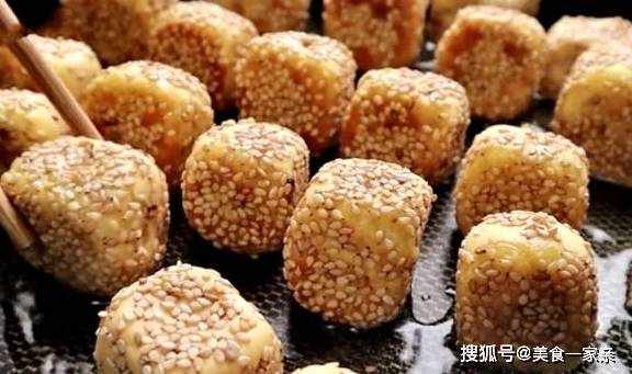 首先把红薯切成片,热水上锅蒸熟,大约蒸15分钟左右。把蒸熟的红薯取出来,趁热打上3个鸡蛋,加上20克白糖压成红薯泥,再加上适量的糯米粉,揉成一个偏软的面团,先分成一样大的剂子,把每个剂子揉圆整理成小方块,每年都沾上一层白芝麻,这样生胚就做好了。