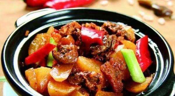 原料:牛肉500克,白萝卜1块,生姜1块,八角1块,香叶2片,干辣椒2条,生抽3汤匙,老抽2汤匙,料酒1汤匙、白糖2克、盐2克、青椒1个、植物油2汤匙