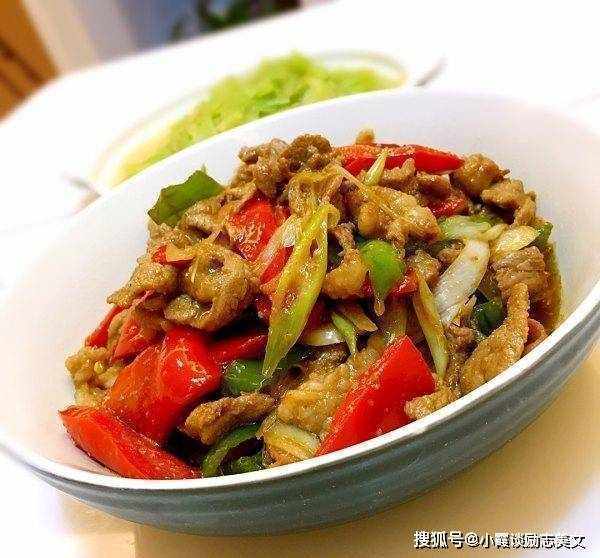 3、将腌制好的羊肉片倒入热锅中,冷油,炒至断生即可食用;
