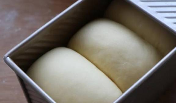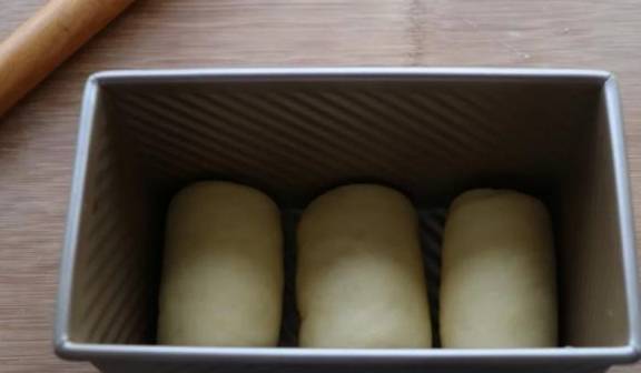 第七步为:全部做好放在吐司模具里,密封二次醒发,醒发至8分满的时候,盖上盖子,放入预热的烤箱,上火145度,下火170度烤45分钟左右,其中烤箱温度仅供参考。