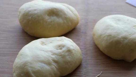第三步:把发酵好的面团揉搓排气,然后分成均匀的三份。